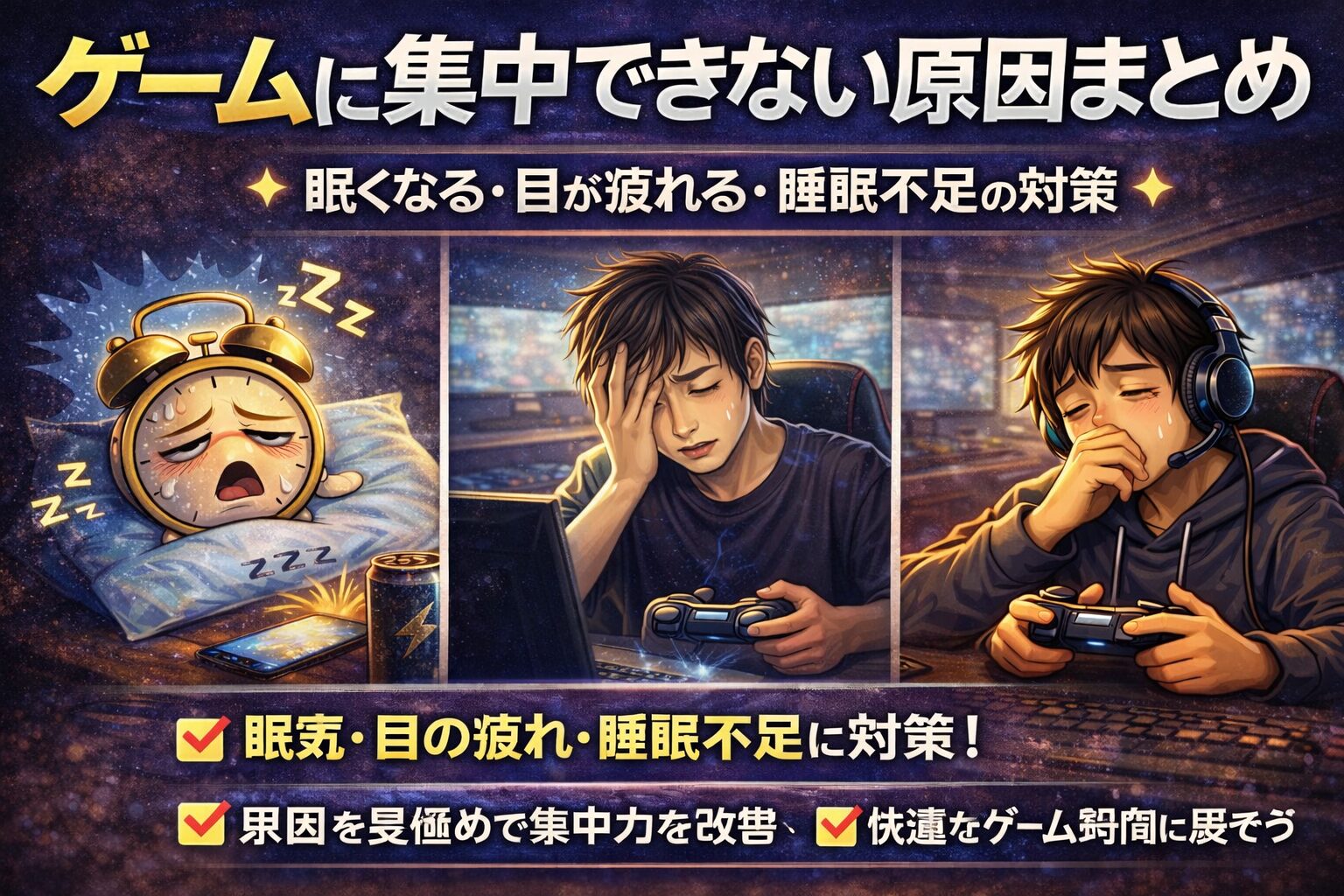 睡眠不足だとゲームに集中できない理由|眠くなる原因と改善策を解説